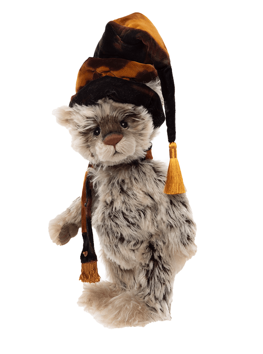 As seen on Charlie Bears TV, Anniversary Popov is a replica of the much-loved favourite from the 2018 Isabelle Collection. He is beautifully handcrafted from a luxurious blend of the finest mohair and alpaca in rich dark brown with white tipping for added depth. He features exquisite detailing throughout, including a sculpted face with a brown and cream muzzle, a hand-embroidered brown nose, and expressive “who, me?” eyes that bring his character to life. Limited to just 200 pieces worldwide, this traditional bear is a truly special addition to any collection. Standing proudly, Popov adores plenty of attention and is sure to capture hearts with his striking oversized hat in gold and brown tones, complete with a matching scarf. Suitable for ages 14 years+. Bear height: 33cm/13"/11 Bear Paws.