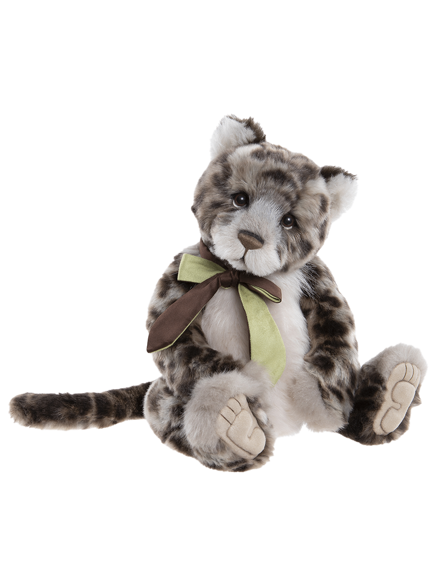 This captivating leopard has a distinctive spotted design and is made from sumptuous plush, with mohair and alpaca accents for an irresistibly soft and huggable feel. A long, fluffy tail adds a playful touch, while carefully sculptured paw pads with tickly toe detailing add character. Flapdoodle is adorned with an elegant two-tone fabric bow in complementary colours and has a white chest which provides a lovely contrast to the spotted pattern. Limited in production to 1000. Suitable for ages 3 years+. Leopard height: 38cm/15”/12 Bear Paws.