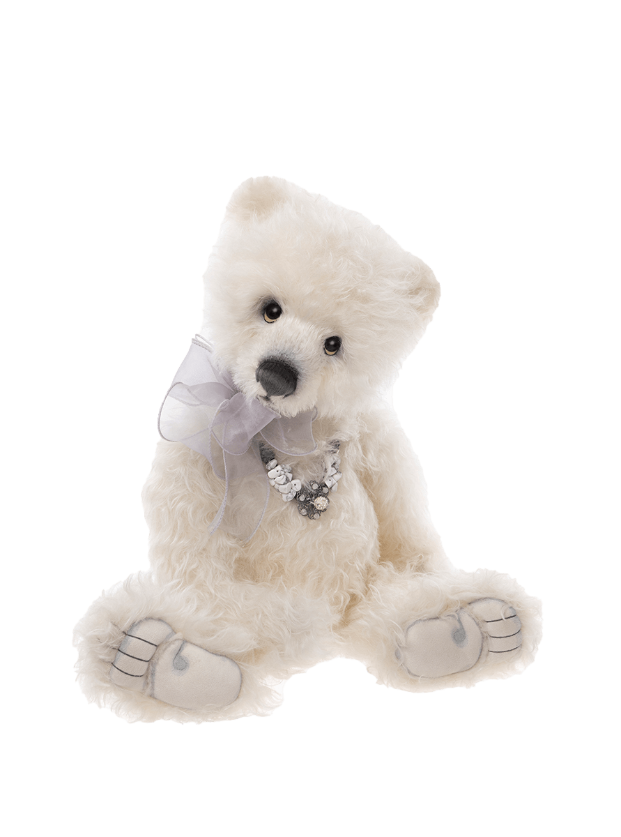 Mrs Mercer is a beary pretty 2025 Isabelle Collection bear designed to make a statement with her exquisite details. Expertly crafted from a blend of mohair and alpaca, she features beautifully soft white fur that exudes sophistication and timeless appeal. She has sculptured paw pads, a hand-embroidered nose, airbrushing and soulful eyes for an unforgettable face. Mrs Mercer is adorned with a stunning necklace and a light purple bow which introduces a pop of colour and complements her graceful appearance. Numbered limited edition of just 200 pieces globally. Recommended for ages 14 years +. Bear height: 48cm/19"/16 Bear Paws. To register your interest in Mrs Mercer, please send us a message to headbear@charliebears.com.