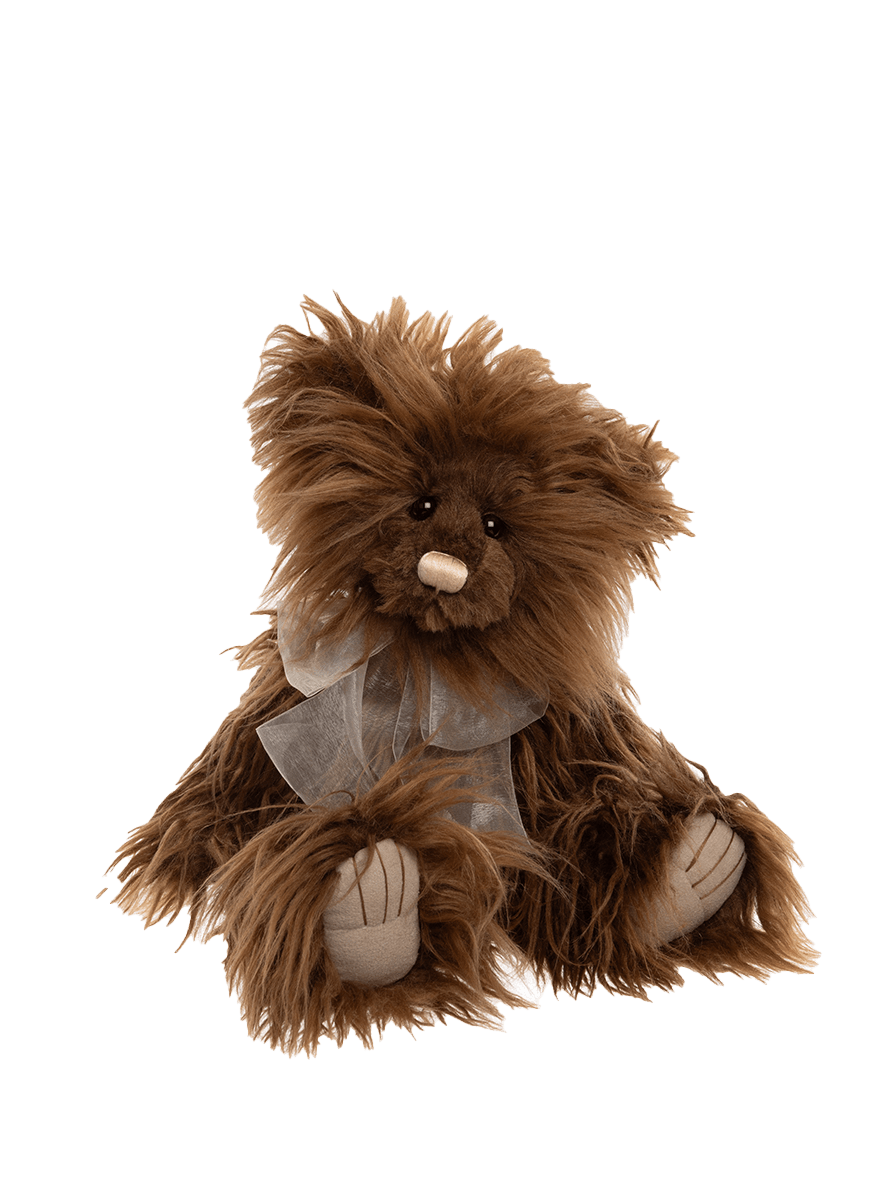 Meet the charming Rumbledethumps, whose fluffy, tousled fur invites endless cuddles. Crafted from luxuriously soft, long-pile rich brown plush, he radiates warmth and cosiness. With a hand-embroidered light nose, shaved muzzle, expressive dark eyes, and tickly toe detailing, every detail brings him to life. A white organza bow around his neck completes his irresistible look. Recommended for ages 3 years +. Bear height: 38cm/15”/12.7 Bear Paws.
